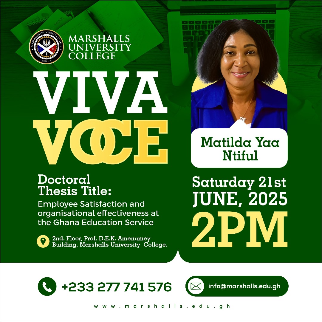 MARSHALLS DOCTORAL FACULTY (MDF) – MRS. MATILDA YAA NTIFUL’S VIVA VOCE